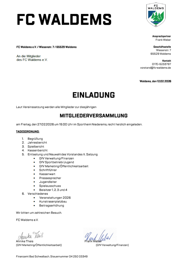 - Laut Vereinssatzung werden alle Mitglieder zur diesjährigen